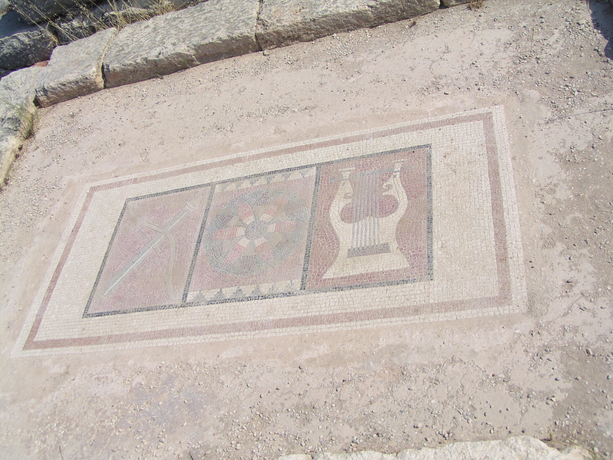 Stelle, kenntlich am ihm zuzuordnenden Bodenmosaik. Denn Apollo war zuständig für die Musik,