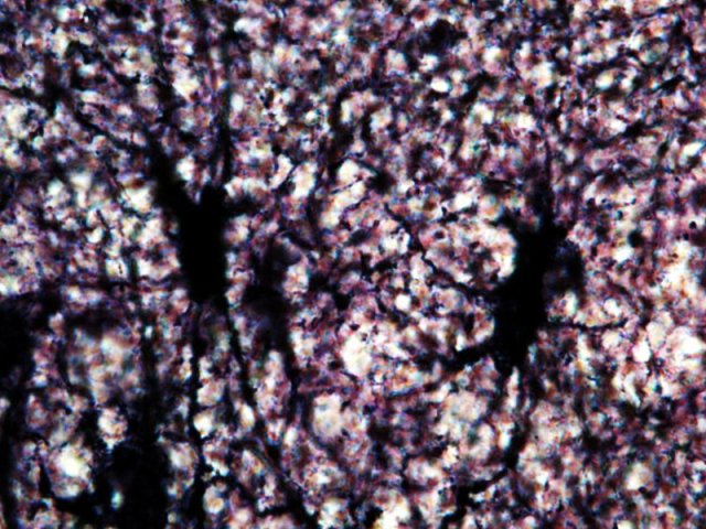 Rechts im Bild oben sieht man Strukturen, die mich an die Dendritenverästelung einer Purkinje-Zellen erinnern: